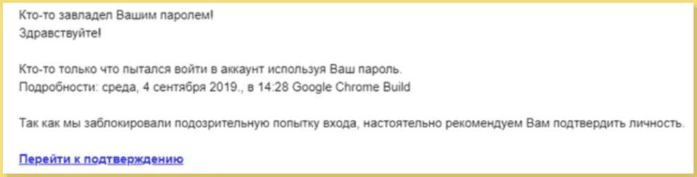 Тема письма. Тема вызывает сильные эмоции — панику, страх, жадность и прочее. Примеры: «СРОЧНО: Ваш аккаунт заблокирован!», «Вам одобрен возврат средств».