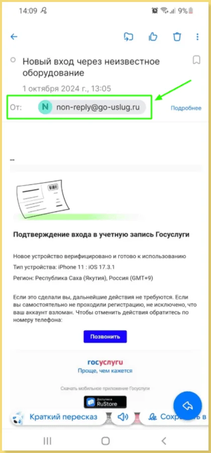 Посмотрите на формат обращения. Например, если письмо от начальника начинается с «Уважаемый коллега», а не с вашего имени, это красный флаг. Обезличенное обращение должно насторожить вас, если вам пишет кто-то, с кем вы знакомы или с кем вас связывают какие-то деловые отношения. Или кто-то, у кого точно есть эти данные — Госуслуги или банк.