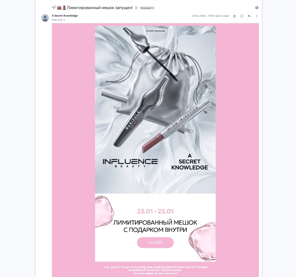 У рассылок низкая стоимость целевого действия. По данным Litmus, каждый $1, потраченный на email приносит порядка $36 выручки.