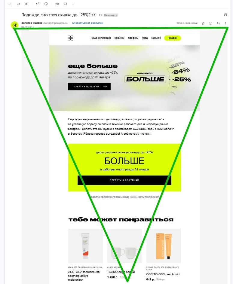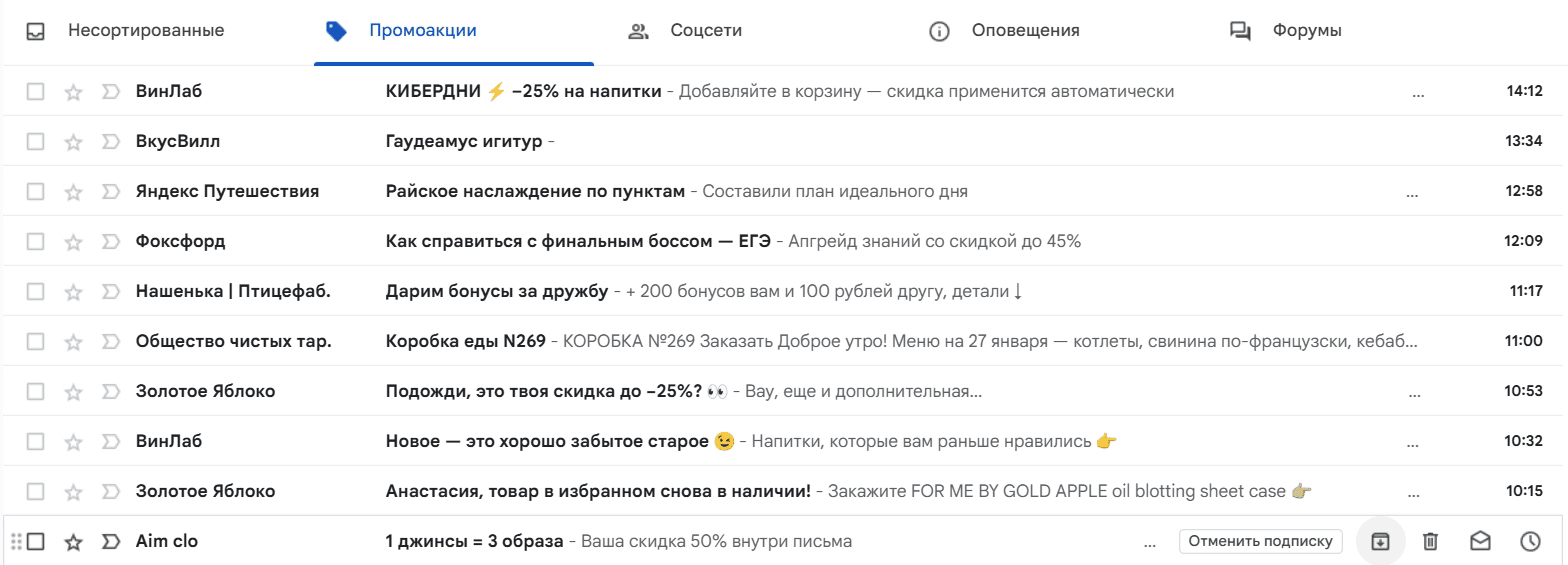 Электронная почта есть у всех. Потенциально подписчиком может стать почти каждый покупатель: электронной почтой пользуются больше 4,26 млрд человек. При этом, по данным Campaign Monitor, 93% из них проверяют свою электронную почту каждый день, а 41% и вовсе делают это намеренно в поисках промокодов и скидок от брендов.