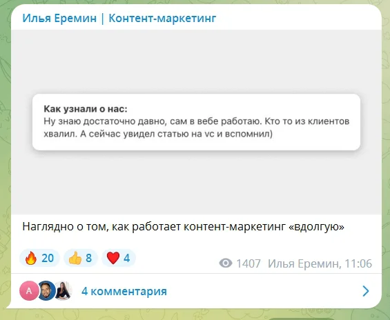 Примером того, как работает контент-маркетинг, поделился контент-маркетолог в «Сделаем» Илья Ерёмин.