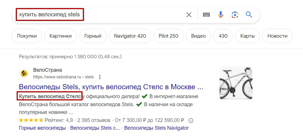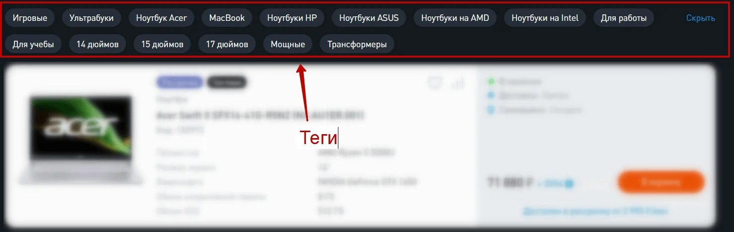 Страница должна быть наполнена поисковыми запросами пользователей для данного товара. Однако не для всех товаров есть запросы. В таком случае сайт нужно оптимизировать не под товарные запросы, а под запросы пользователей для категорий, например, «купить холодильник». Тогда карточки товара не потребуют много внимания, ведь трафик будет приходить через разделы сайта.