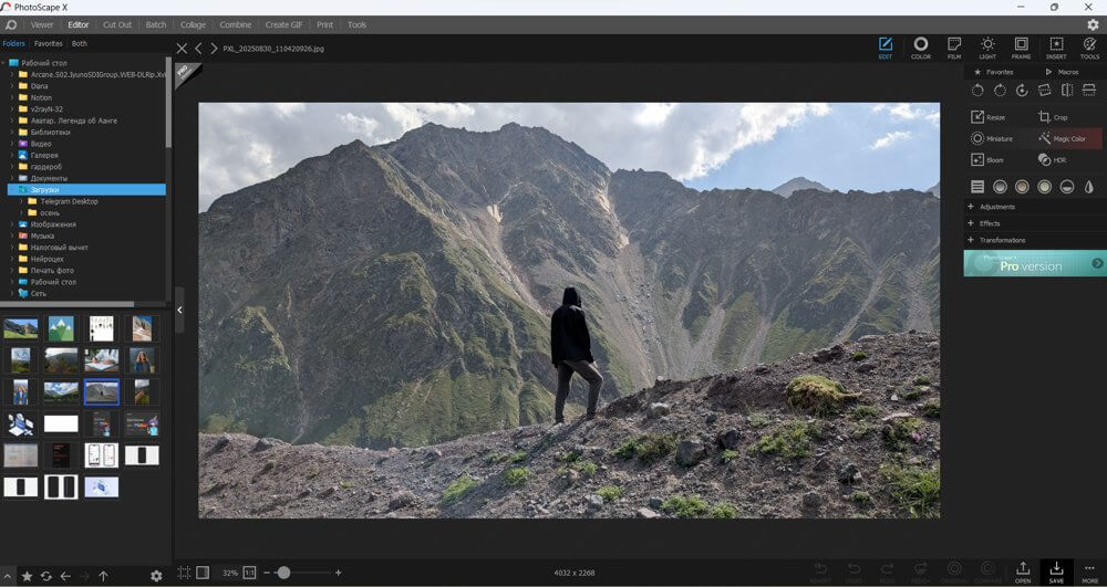 Стоимость: бесплатно; есть платное расширение PhotoScape X Pro с дополнительными фильтрами и объектами