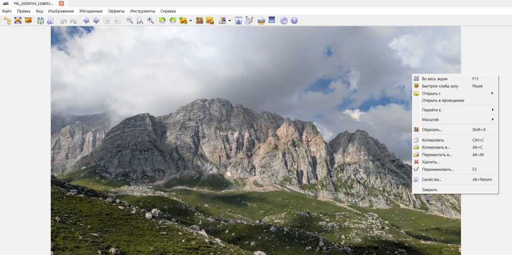 IrfanView — популярный универсальный просмотрщик изображений с базовыми инструментами редактирования. У программы простой функционал, но можно установить дополнительные настройки, чтобы добавлять эффекты, читать или сохранять иконки, проигрывать мультимедиа.