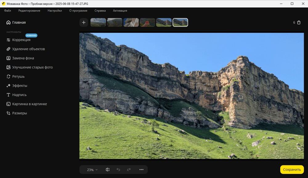 Мовавика Фото — универсальная программа для работы со снимками. Поддерживает организацию библиотеки: сортировка по событиям и геолокации, быстрый просмотр и базовое редактирование в одном интерфейсе. Есть автоулучшение в один клик, выравнивание горизонта и изменение размера.
