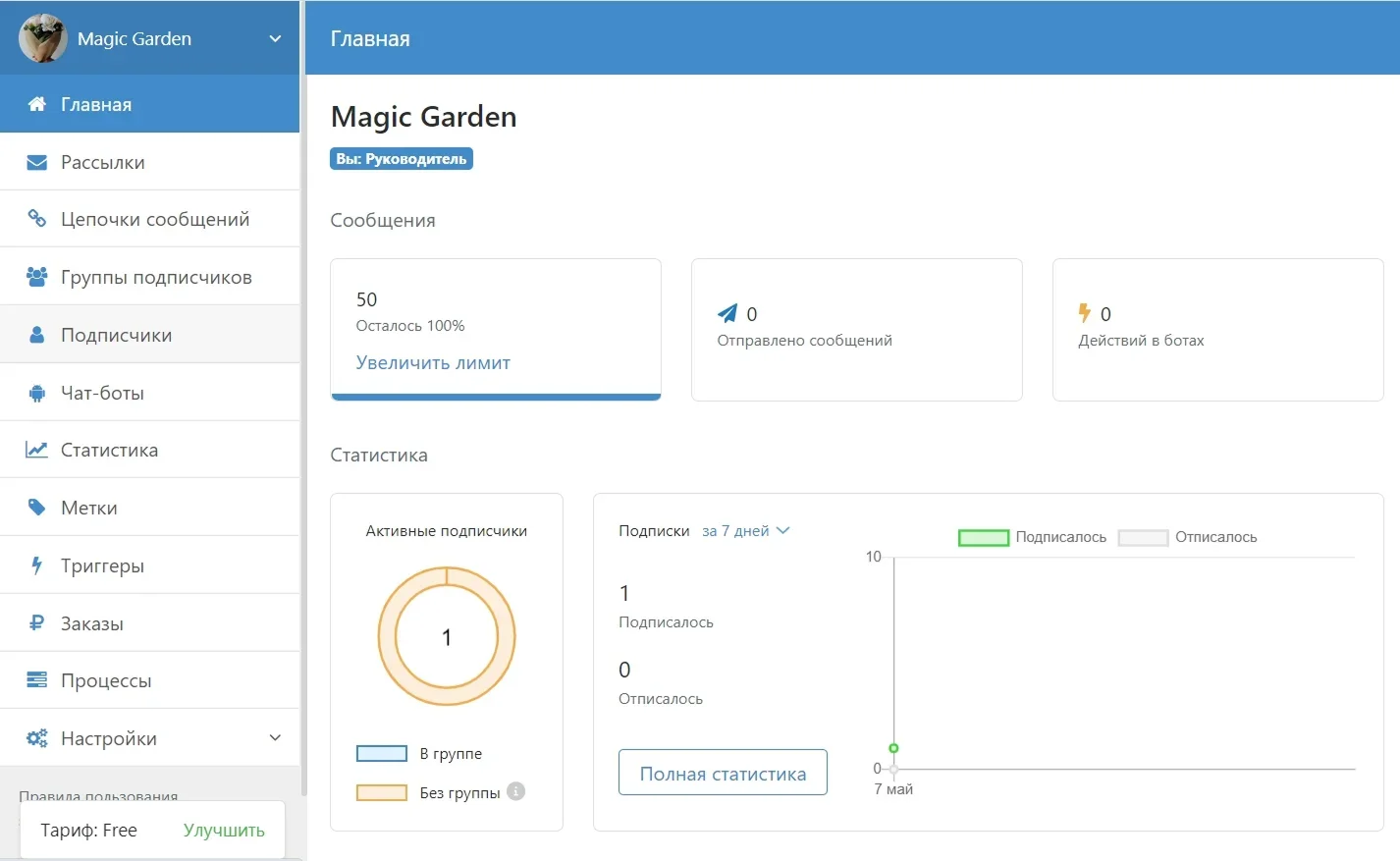Цена. У сервиса есть бесплатный тариф с возможностью отправлять 50 сообщений в сутки. Платный тариф — от 500 ₽ в месяц в зависимости от количества сообщений в день.