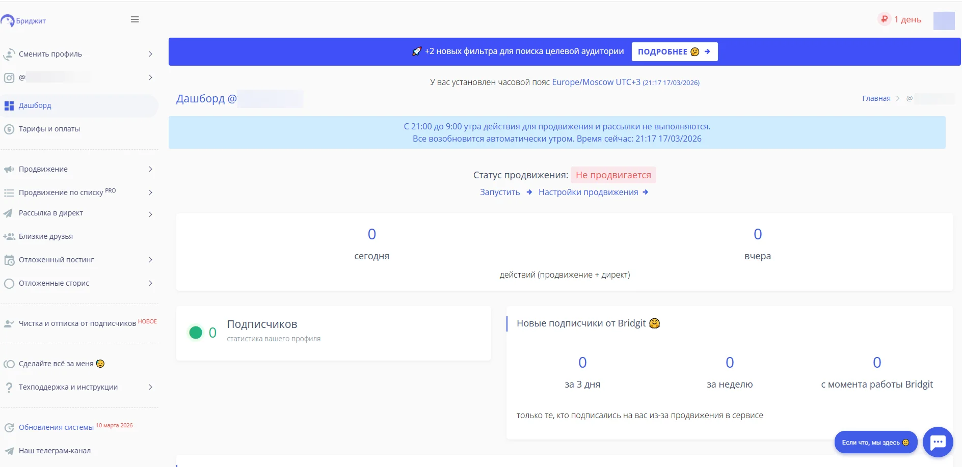 В Bridgit есть лимит на рассылки, который зависит от типа сообщений. Например, по открытым диалогам — лимит выше, по подписчикам — меньше, по подписчикам конкурента или гео — совсем небольшой. При этом точных цифр по количеству сообщений нет — сервис ежедневно оценивает доступный лимит и не позволяет его превышать.