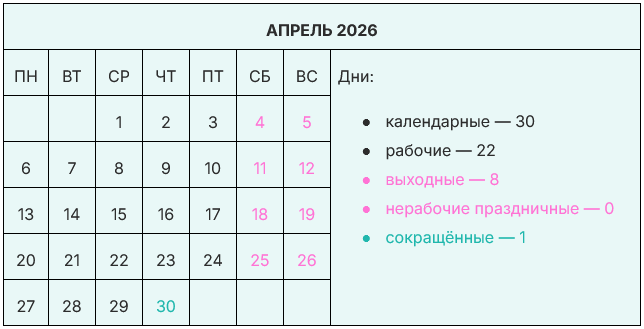 Совет для руководителей и специалистов по финансовому планированию. Апрель — это идеальный месяц для экономии бюджета. Самое высокое количество рабочих дней снижает фактическую стоимость часа работы. Можно планировать на апрель самые объёмные и трудоемкие этапы проектов.