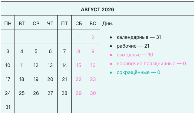 Планирование отпусков и нагрузки. Точный учёт рабочих дней позволяет равномерно распределить нагрузку в периоды отпусков, избегая критических переработок и дефицита кадров в ключевые месяцы.