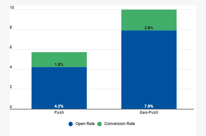 Кстати, сегментация на основе местоположения клиента может повысить скорость реакции до 300%, а конверсию с 1,5% до 3,8%. Поделитесь информацией об акциях в ближайшем магазине или об открытии новой точки — и пользователь убедится , что он не зря подписан на пуши от вас.