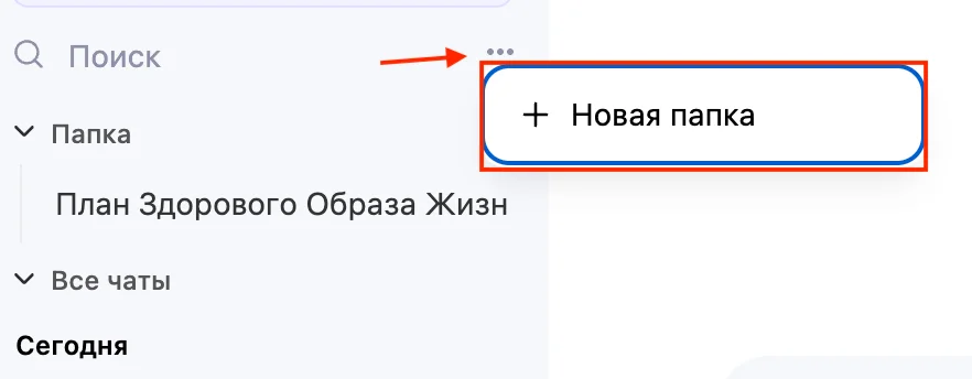 Чаты хранятся в боковой панели в течение 7 дней. Найти нужный можно через поиск по названию или тегу. Названия генерируются автоматически, но чаты лучше переименовать — иногда сервис придумывает имена, далекие от темы диалога. Чтобы переименовать чат, нажмите на три точки и выберите «Переименовать».