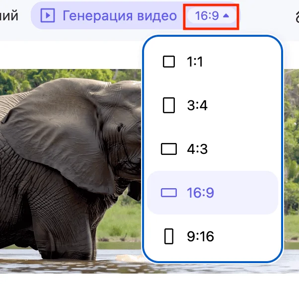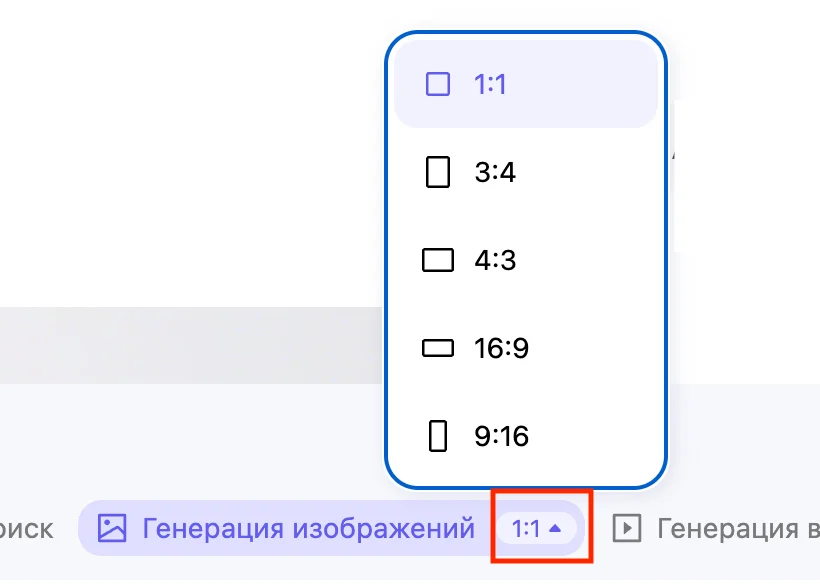Перед генерацией можно настроить масштаб изображения, выбрав вертикальный или горизонтальный формат. Нужная кнопка находится рядом с режимом.