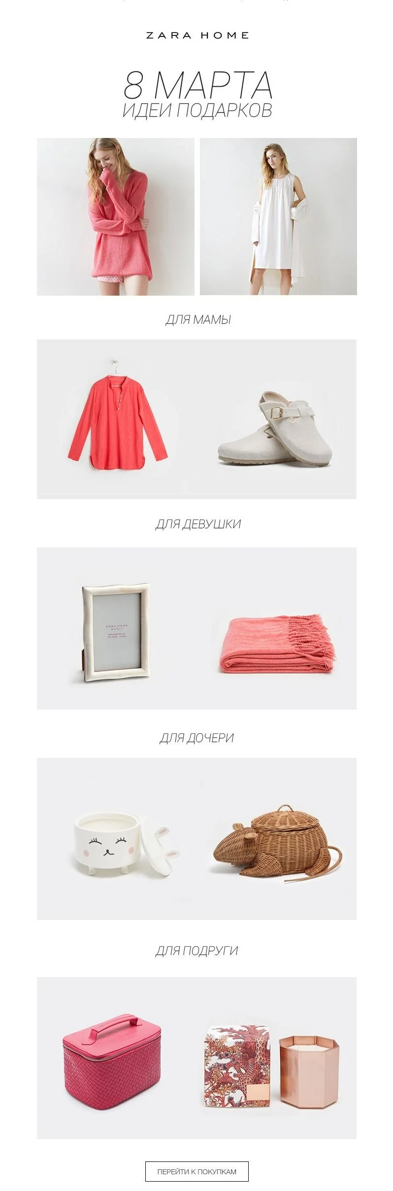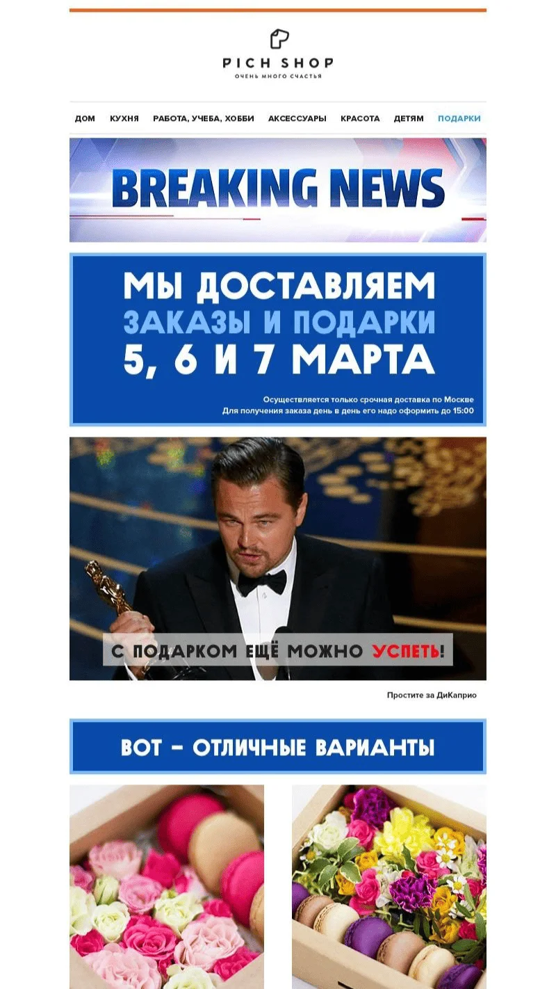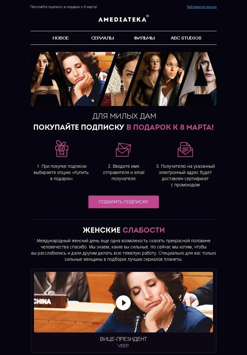 Вывод здесь простой: вместо «голых» поздравлений женщинам стоит предлагать продукт в качестве подарка — так же, как и мужчинам. Однако подача и типы подарков в этом случае будут отличаться — поэтому и стоит делать разные письма. Ну и, конечно, поздравительную часть лучше включать в рассылку только для женской аудитории.