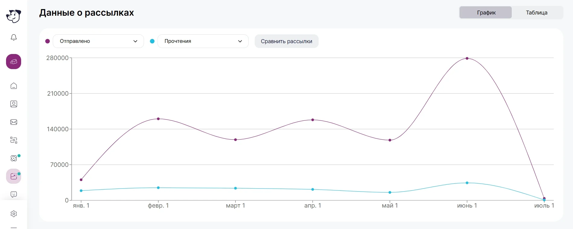 В Unisender можно проанализировать открываемость письма, количество отписок, переходов на сайт и конверсий. Затем эти метрики можно сравнивать, использовать в А/В-тестировании и выявлять слабые места в рассылке.