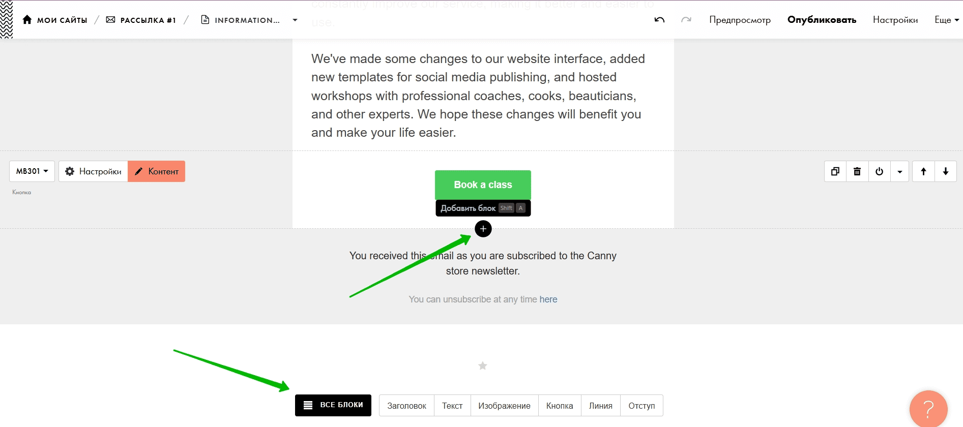 Все изменения можно сохранить в собственной библиотеке блоков — удобно, если вы планируете регулярно создавать письма из блоков.