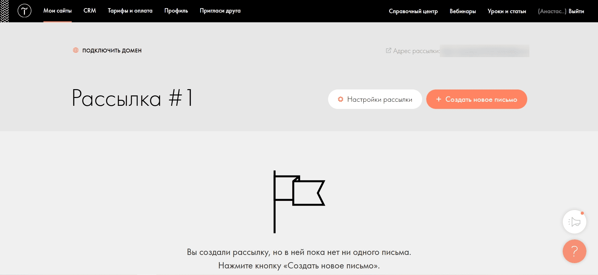 При создании рассылки вам предложат ввести её название. На странице можно подключить домен и установить нужные настройки. Рассылка может состоять из нескольких писем, поэтому нужно сначала создать рассылку, а затем — письмо.