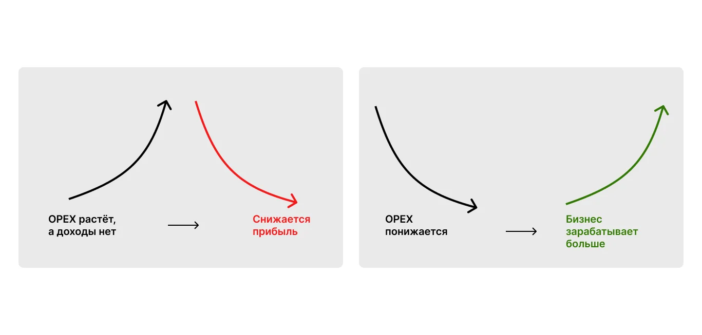 Например, если OPEX растёт, а деньги не приходят в кассу → компания теряет прибыль. Если OPEX снижается, а деньги поступают в кассу, ну или хотя бы не тратятся, то бизнес начинает зарабатывать больше.