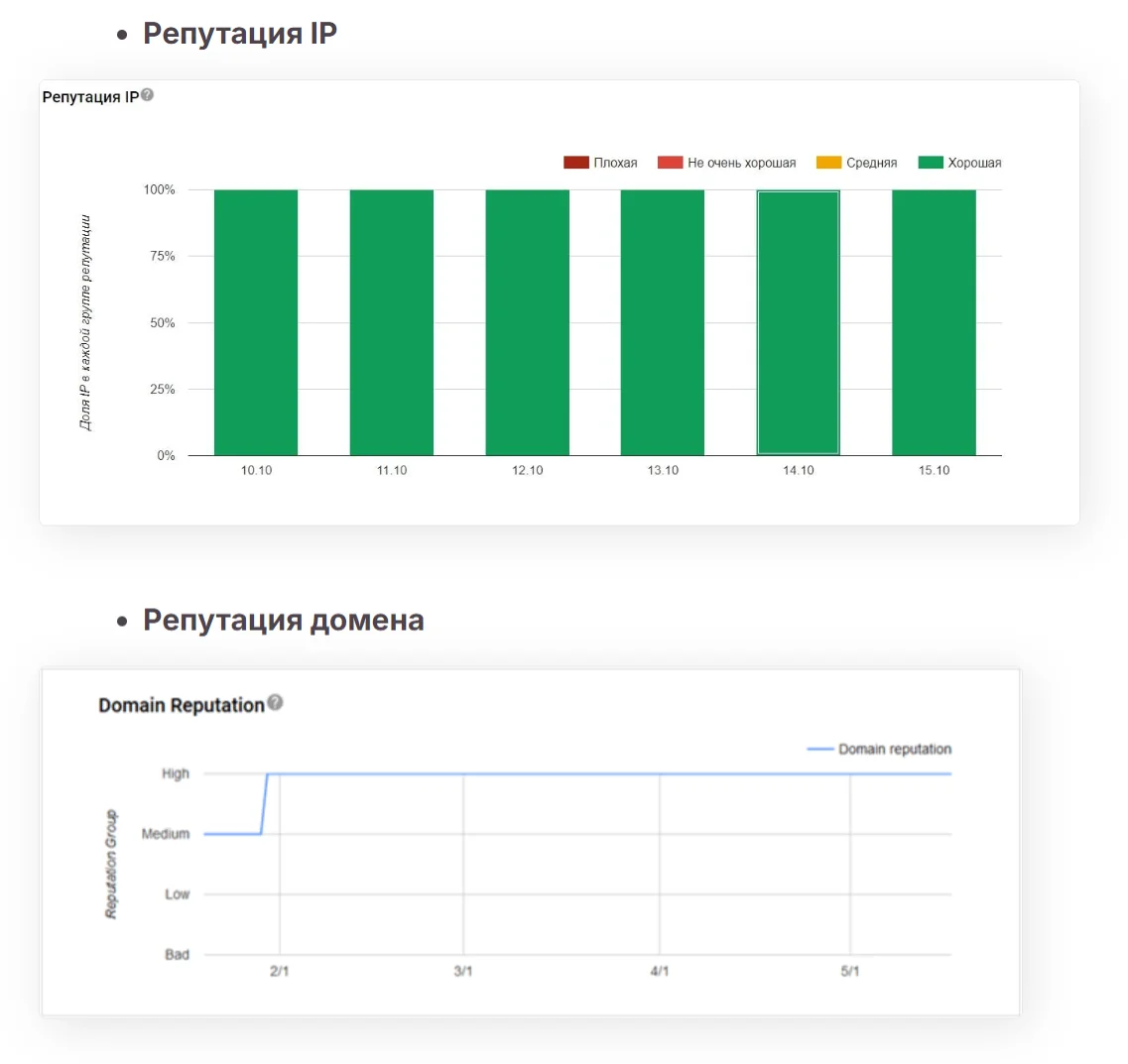 Проверить репутацию можно с помощью постмастеров почтовых служб — например, постмастер Gmail и постмастер Mail.ru.