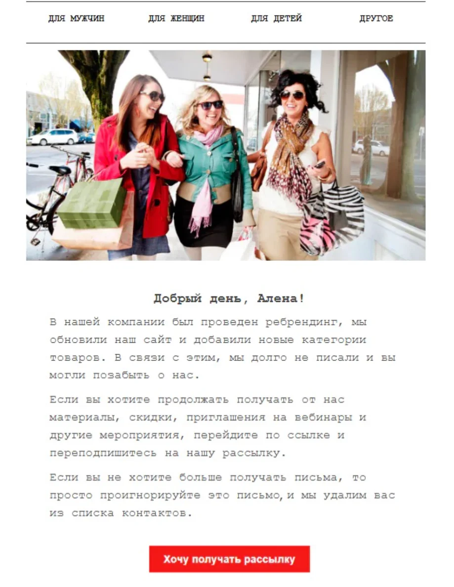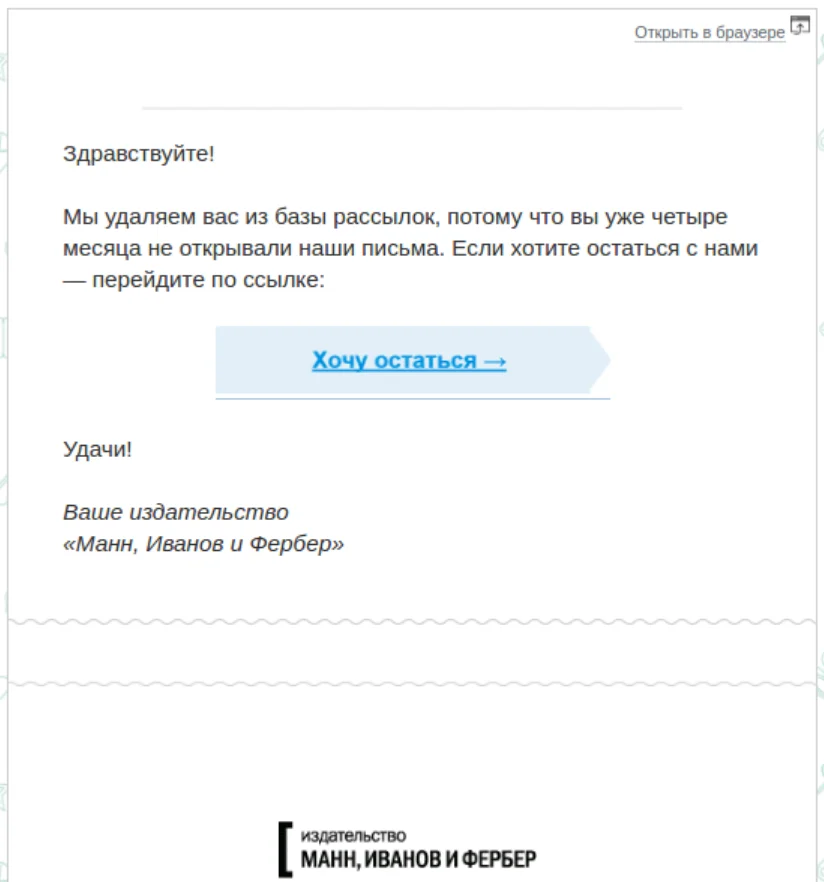 Также нужно реанимировать базу, если случился длительный перерыв в рассылках. Если вы не отправляли письма 2-3 месяца и больше, подписчики могли просто забыть о вас.