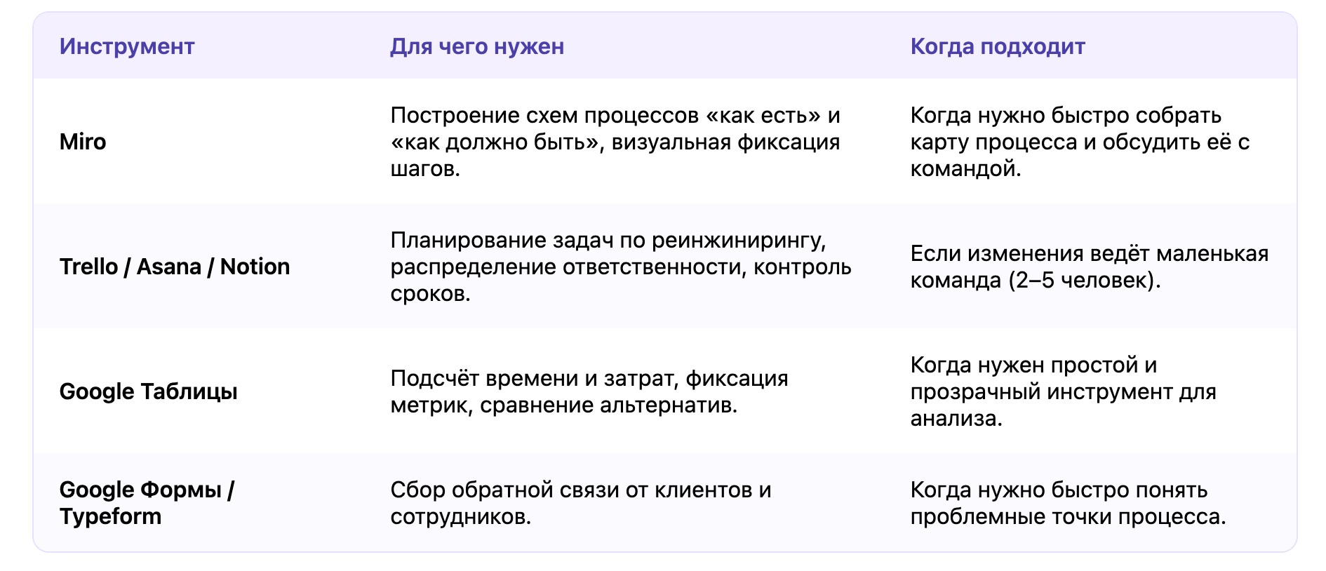 Выберите инструменты. Зависит от того, какие инструменты в принципе используете в работе. Собрали в таблицу базовые полезные сервисы и программы.