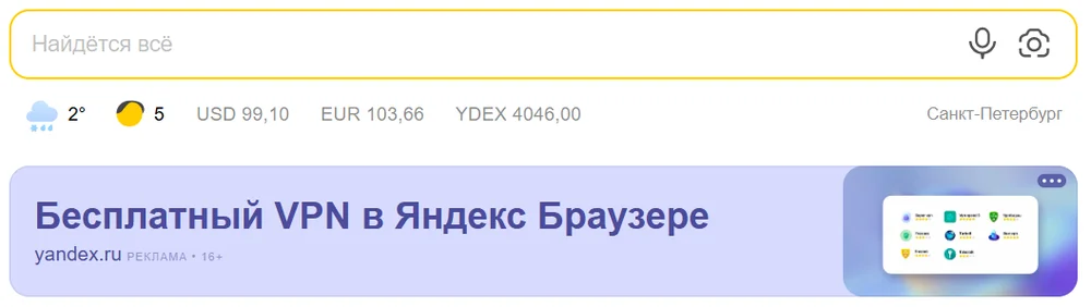 Реклама под поисковой строкой Яндекса. Баннер узкий, но крупный, бросается в глаза. При клике открывается страница для бесплатного скачивания.