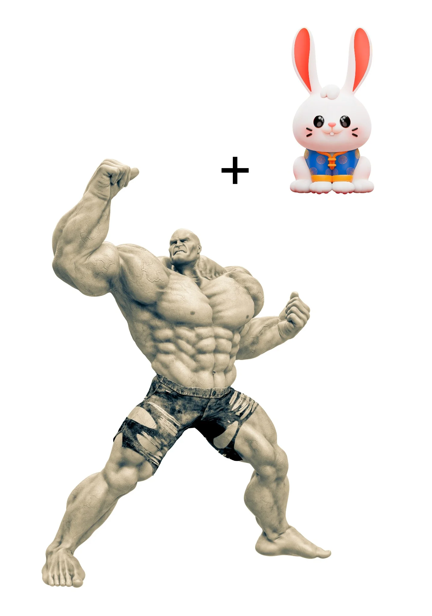 Кролик, конечно же, справился с трудностями и трансформировался в прокачанного кроля. Это и был элемент неожиданности — показать, как хрупкий кролик может стать гипертрофированно сильным и мускулистым здоровяком. Такого на фотостоках не найти… Или найти?