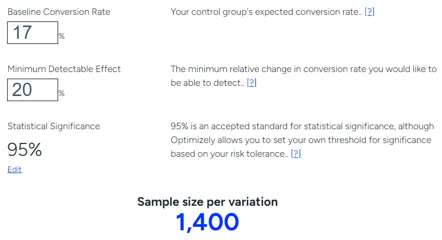 Неправильная метрика. Результату можно будет верить, если выбрать только одну метрику для улучшения. Например, стоит задача — увеличить конверсию в покупку для новых пользователей. Большинство онлайн-калькуляторов считают размер выборки, учитывая именно эту метрику.