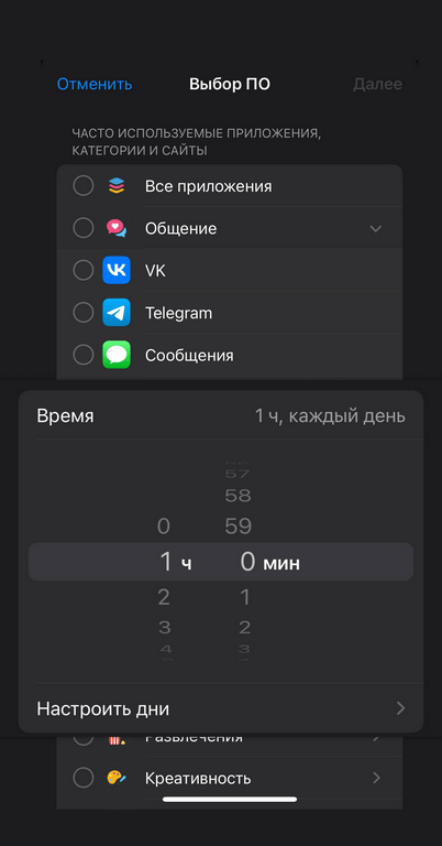 Время использования устройства. Например, можно разрешать пользоваться смартфоном только два часа в день или отключать доступ после 22:00.