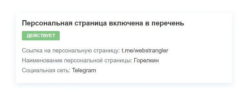 Если всё хорошо, блогер получит на электронную почту уведомление о включении его персональной страницы в реестр и уникальную ссылку, по которой пользователи смогут проверить, есть блог в реестре или нет. Уведомление также направят владельцу социальной сети.