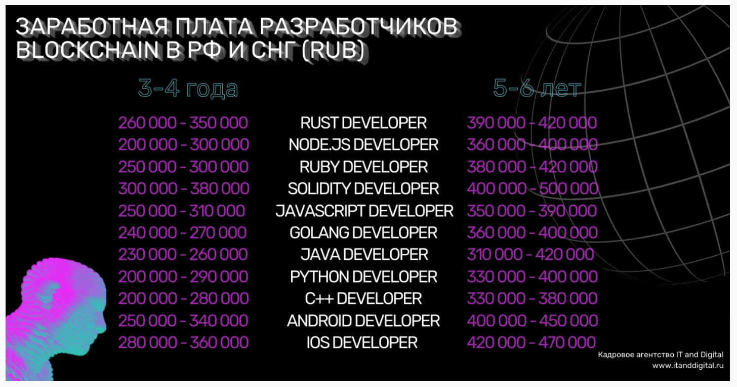 Специалисты по блокчейну — это инженеры, программисты и аналитики, которые работают с децентрализованными технологиями, основанными на блокчейне (распределенная база данных, в которой данные хранятся в виде цепочки криптографически связанных блоков). Они создают и разрабатывают приложения, системы и платформы, использующие эту инновационную технологию.