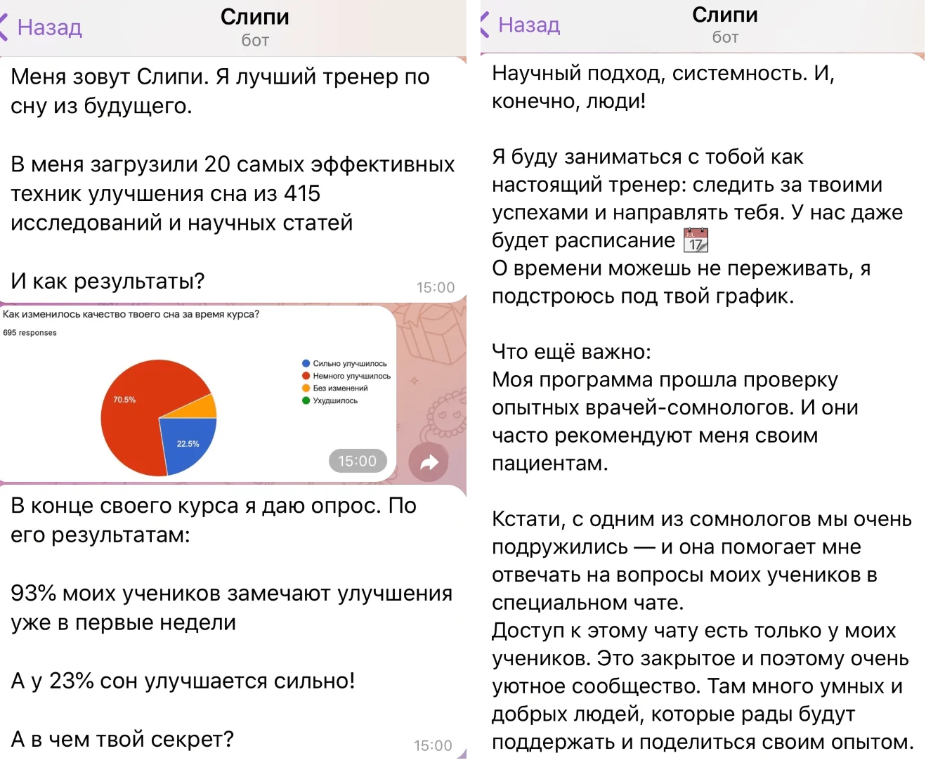 На старте думали, что наши боты для довольно узкой аудитории — будут пользоваться люди, максимально похожие на нас. Из сферы IT, осознанные и увлеченные наукой, темой здоровья и саморазвития, медитациями и т.д. А оказалось, что аудитория очень разная.