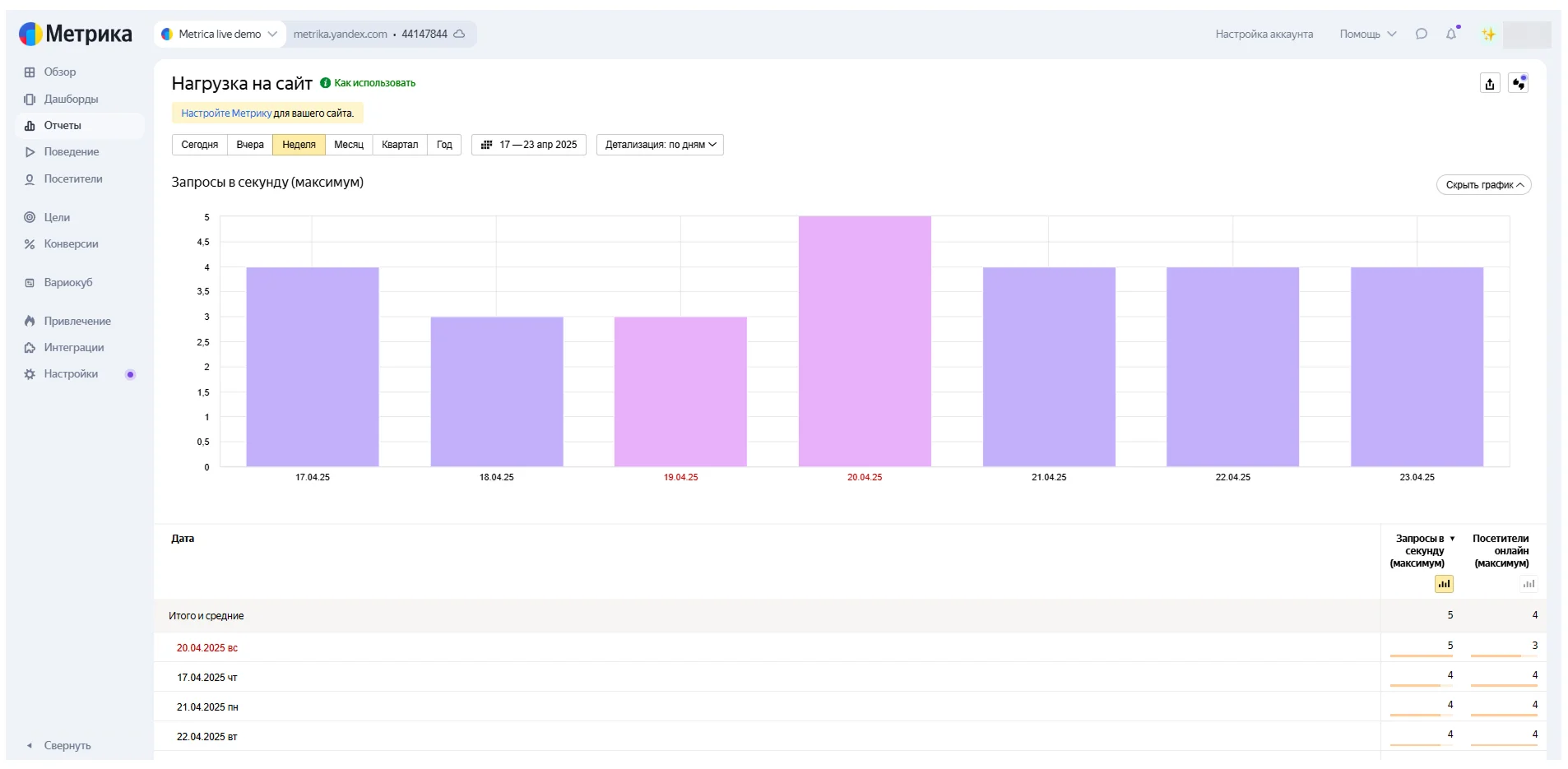 Функция доступна ресурсам с посещаемостью 100+ пользователей в неделю. Отчёт мониторинга можно посмотреть в любое время в личном кабинете Яндекс Метрики.