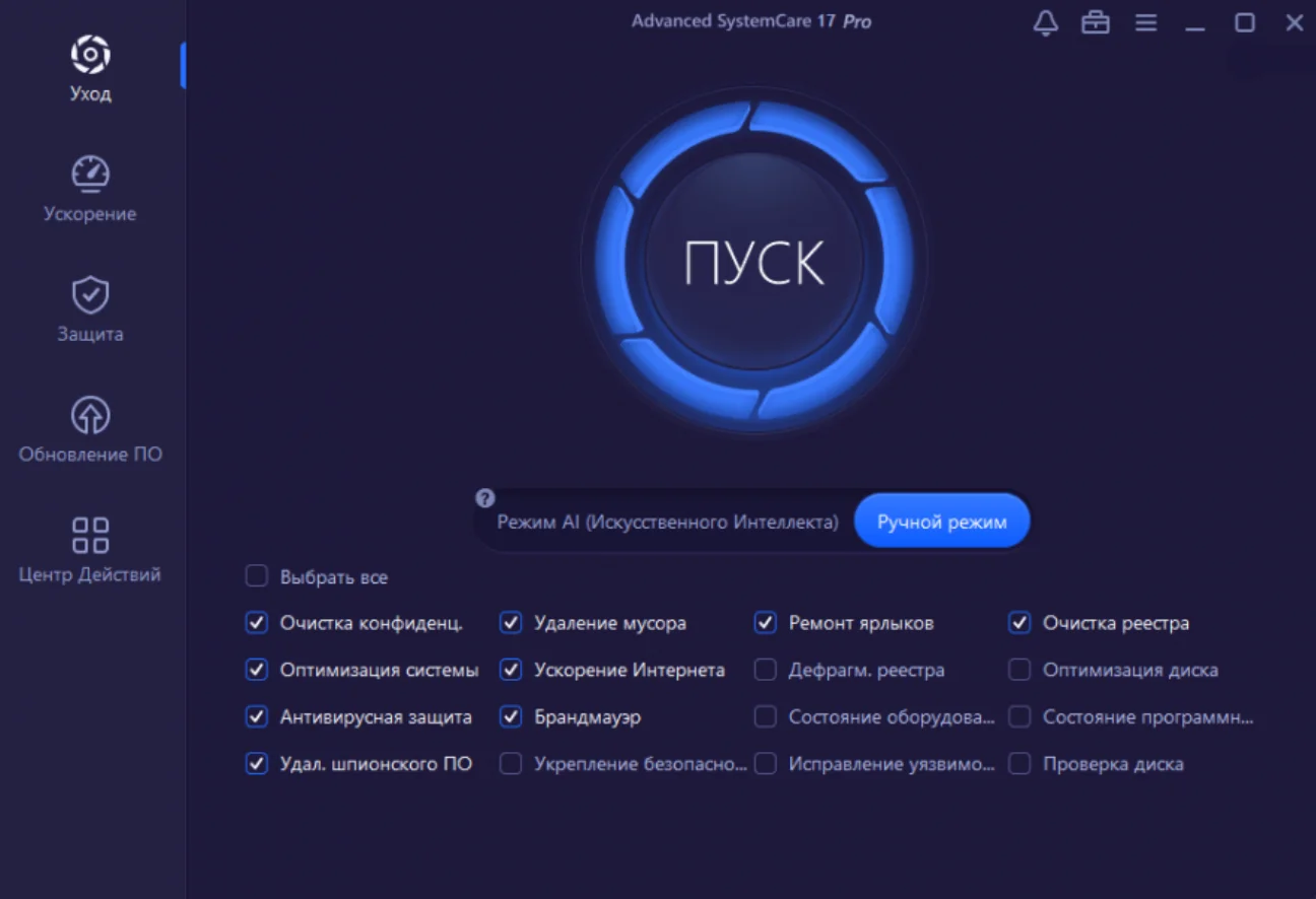 Особенность Advanced SystemCare в использовании искусственного интеллекта — программа может очищать и оптимизировать компьютер с учётом того, как оптимизация выполнялась ранее.