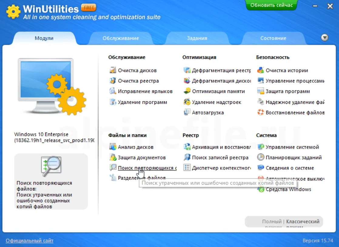 Сайт: https://www.pcclean.io/winutilities-free/