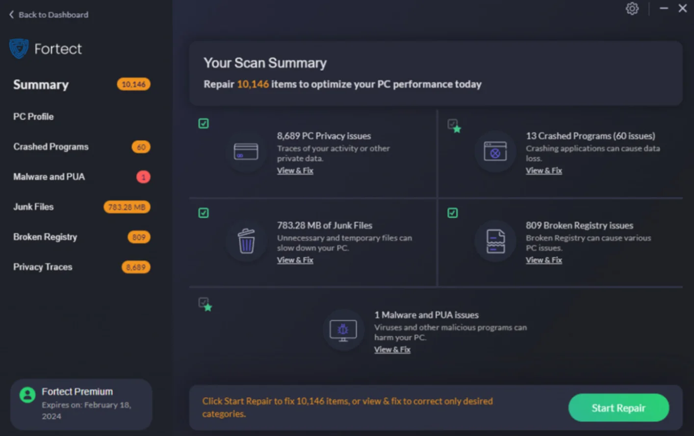 В бесплатной пробной версии можно исправить все обнаруженные элементы в каждой категории. Но каждую проблему нужно удалять по одной и вручную. Платная версия позволяет исправить все проблемы разом.