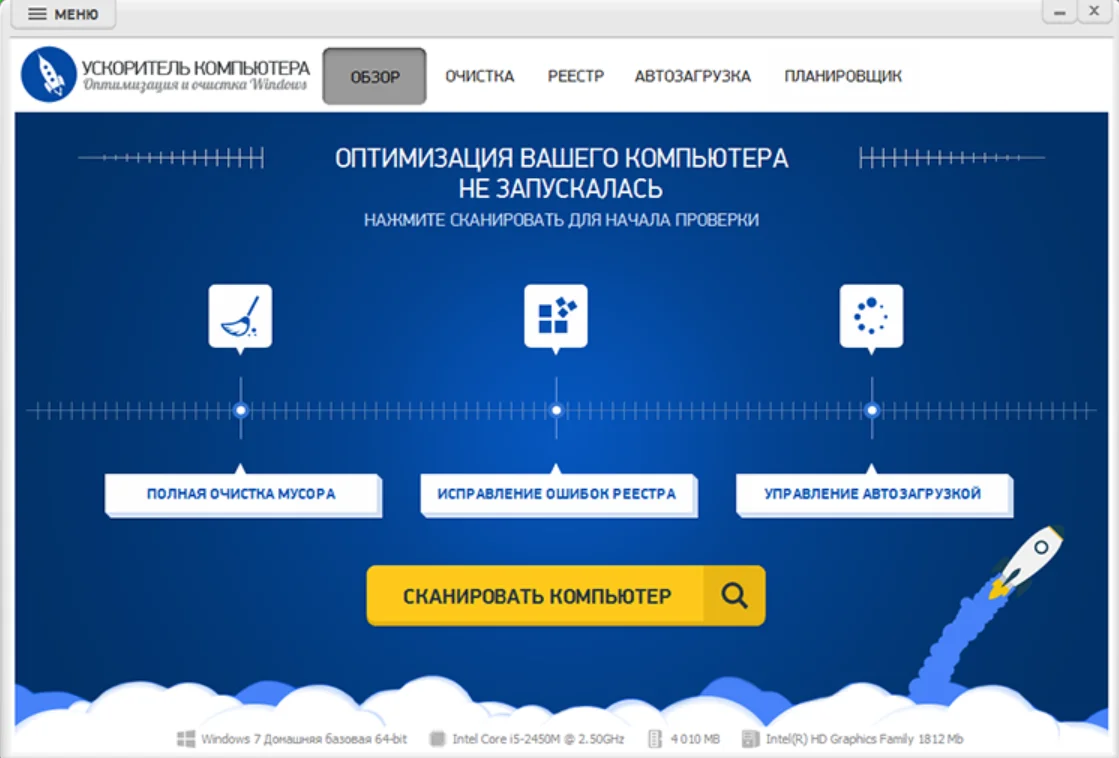 Программа «Ускоритель Компьютера» предназначена для оптимизации и очистки ПК с Windows 11, 10, 7, 8, XP. Она умеет: