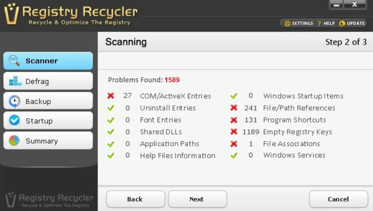 Registry Recycler проверяет и восстанавливает реестр, что позволяет улучшить скорость работы ПК и увеличить производительность системы. По завершении очистки программа отображает сводку процесса, в котором указаны дата и время сканирования, количество выявленных и исправленных ошибок. Registry Recycler можно настроить на выполнение автоматической проверки обслуживания реестра ежедневно или еженедельно и поддерживать чистоту системы постоянно.
