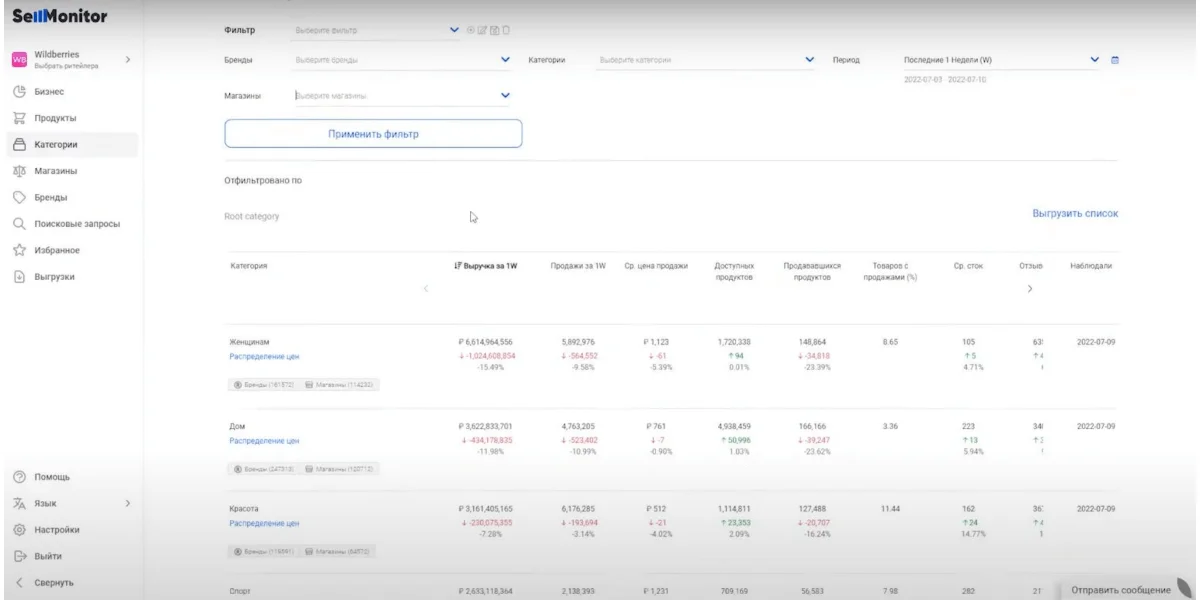 | SellMonitor | от 9900 | Wildberries, Ozon, Яндекс Маркет, МегаМаркет, Lamoda, Uzum Markte | Блог со статьями про маркетплейсы. Сопровождение по работе на маркетплейсах. Telegram-бот для просмотра показателей товара за месяц |