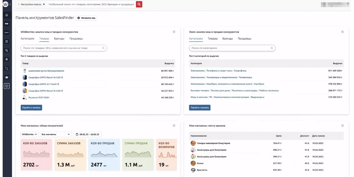 | SalesFinder | от 7000 | Ozon, Wildberries | Доступны видео для изучения инструментов сервиса. Поддержка только по электронной почте и в Telegram |