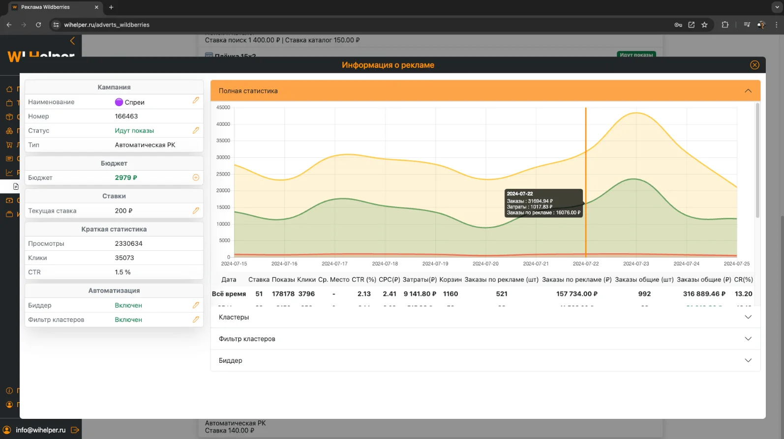 Сервис Orkestro помогает управлять рекламой на Wildberries. Примечательно, что на бесплатном тарифе доступны все инструменты. Это даёт возможность полноценно протестировать сервис.