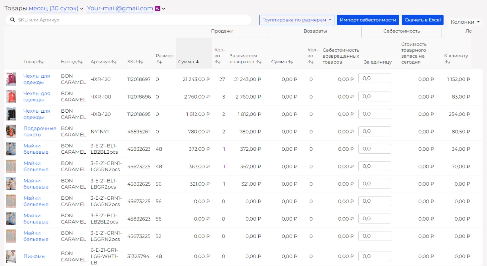 Стоимость: 7 дней ― бесплатно, потом зависит от возможностей, минимальный набор ― от 1267 ₽ в месяц только для Wildberries и Ozon.