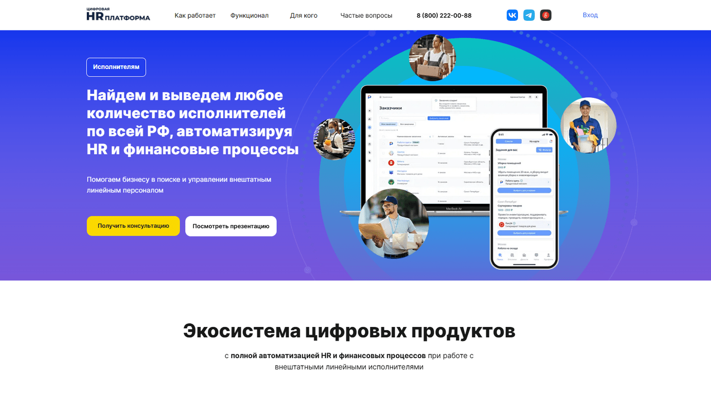 Экосистема цифровых сервисов для работы с внештатными исполнителями и самозанятыми.
