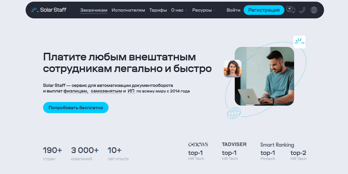 | Solar Staff | Международные выплаты, работа с валютами, единый договор | Комиссия выше среднего, при УСН НДС может быть невыгоден | Комиссия 4-9% |