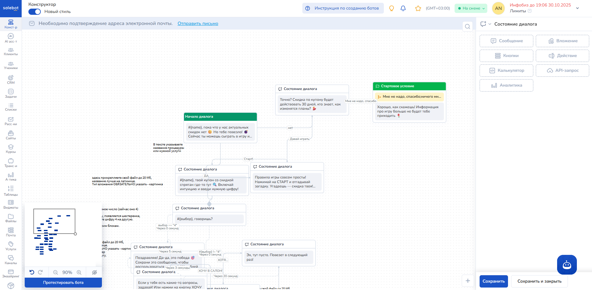 Чтобы создать виртуального помощника, не потребуется знание программирования, в редакторе понятный интерфейс и удобные подсказки. В случае возникновения вопросов всегда можно обратиться в круглосуточную службу поддержки.