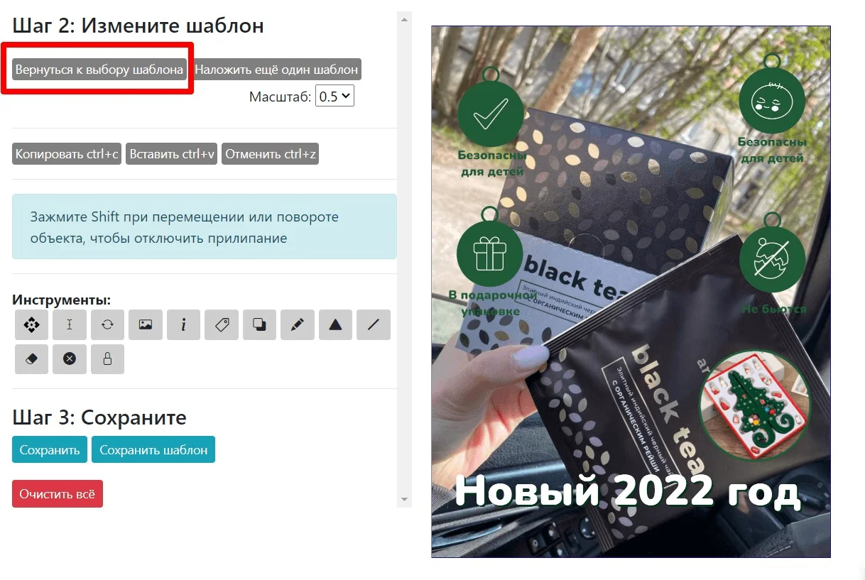 Как работает. Онлайн-редактор от создателей сервиса отложенного постинга SMMplanner. В нем нет отдельных шаблонов для маркетплейсов, но при подготовке карточек можно воспользоваться другими шаблонами с похожими техническими требованиями. Например, шаблон для поста в с соотношением сторон 1:1 подойдет для инфографики Ozon.