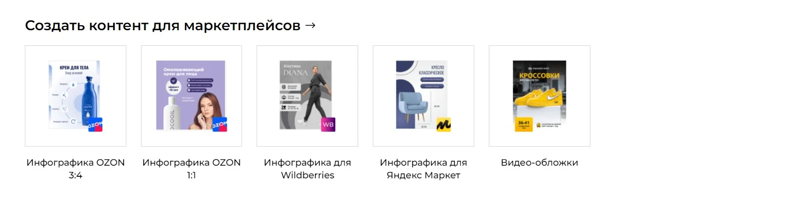 Как работает. Основное назначение Flyvi ― работа с сайтом и соцсетями. Сервис позволяет настроить отложенный постинг, сделать картинки к постам, оформить сторис для сайта. Но среди шаблонов есть и инфографика для маркетплейсов: реклама, инфографика, рич-контент.