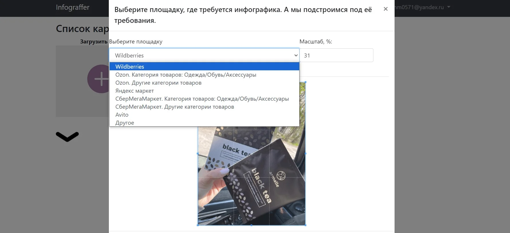 Как работает. После загрузки фото сервис предлагает выбрать площадку для размещения, чтобы подстроиться под ее требования.