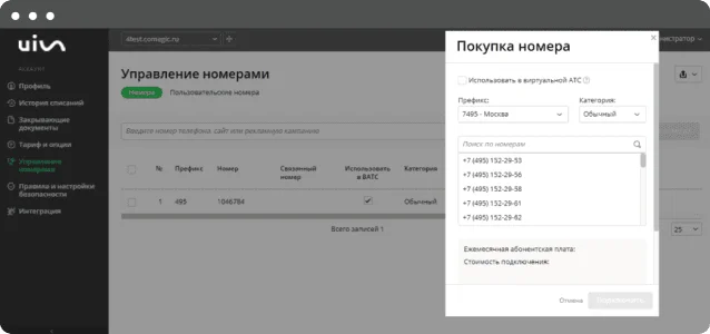 В Mango Office доступны оба вида коллтрекинга с безлимитными номерами. На любом тарифе подключена базовая виртуальная АТС, численность номеров не ограничена. При подключении мультирегиональности можно показывать региональные номера с кодом одного из 93 городов России.