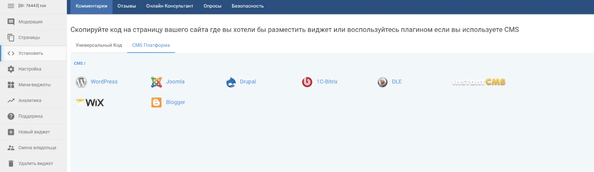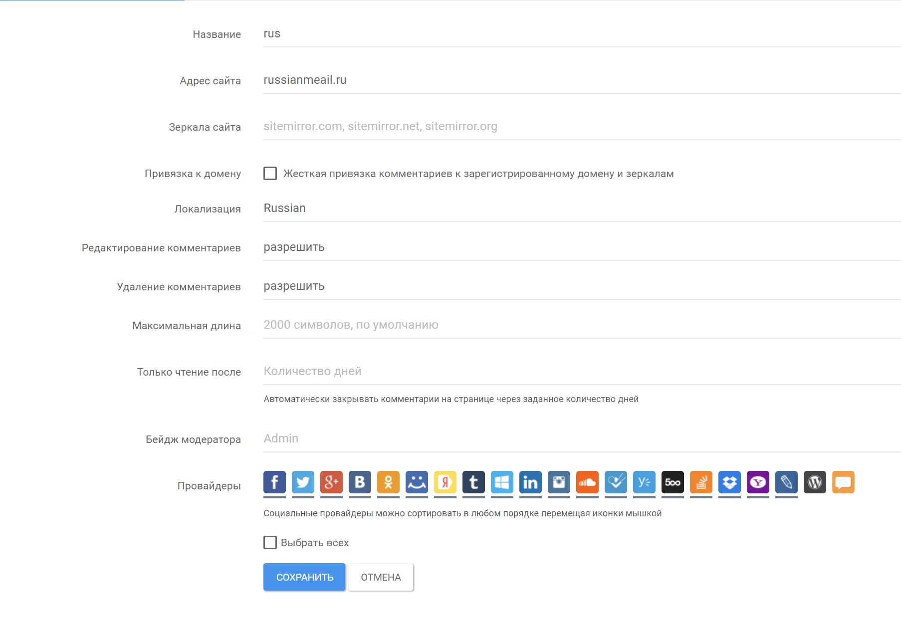 Чтобы воспользоваться сервисом, необходимо зарегистрировать аккаунт Cackle.