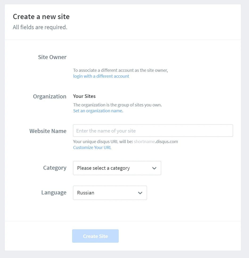 Чтобы установить сервис комментариев на сайт, необходимо зарегистрировать аккаунт на сайте Disqus.
